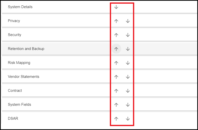 - Click the arrow of any category to set the order of the categories. Clicking on the top pointing arrow will move that category one place higher. Similarly, clicking the arrow pointing down will move that category one place lower.