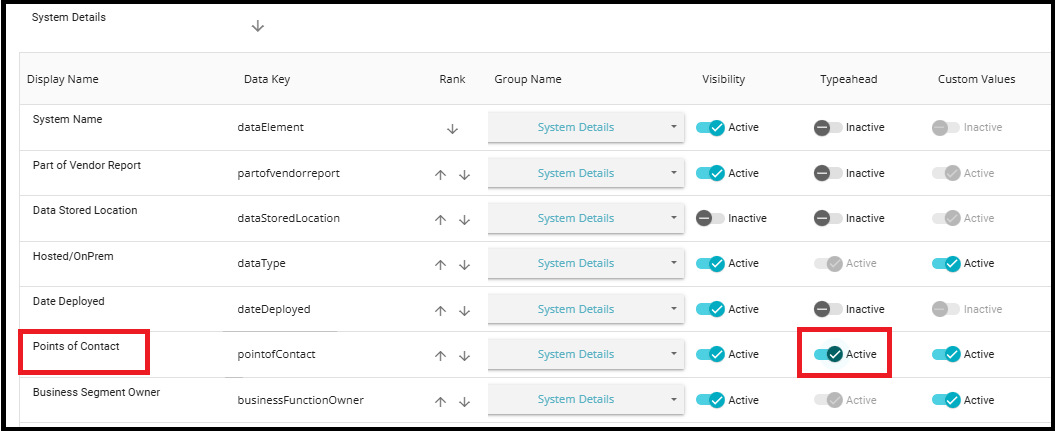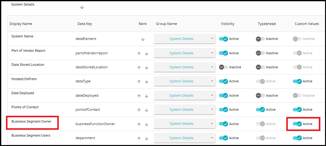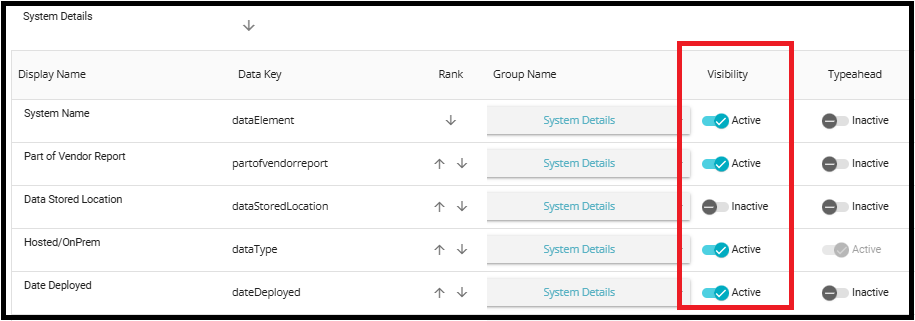 Visibility: Fields can be hidden from the System Details page if needed by making the field Inactive here.