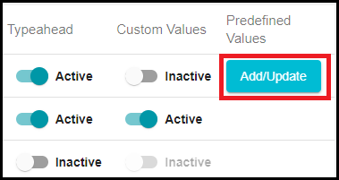 Predefined Value: Once the Typeahead has been activated, the option to Add or Update the values in the drop-down menu will appear here.